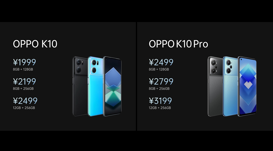 在价格方面,OPPO K10 8+128GB版本售价1999元,8+256GB版本售价2199元,12+256GB版本售价2499元。OPPO K10 Pro 8+128GB版本售价2499元,8+256GB版本售价2799元,12+256GB版本售价3199元。OPPO K10系列4月24日起全面开启线上线下渠道预定,4月28日上午10:00在OPPO官方商城、京东、天猫等各大线上平台正式开售。