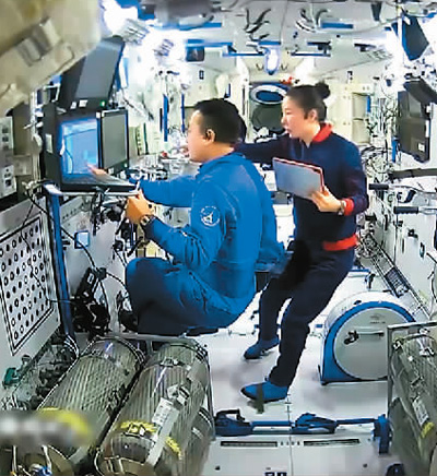 随着中国航天员乘组入驻“天宫”,太空中迎来了“北京时间”和以此为时间坐标的中华文化节日和重大国际盛会,于是,人们看到“神十三”乘组欢度了中国人的第一个“太空春节”“太空元宵节”。虎年新春佳节,他们手持“福”“春”和“中国结”,向全国人民和全球华侨华人送上新春祝福。他们通过“天地连线”现身央视元宵节晚会,航天员王亚平以一曲太空《茉莉花》拨动亿万国人的心弦,航天员翟志刚和叶光富分别以“白云蓬蓬生足下”“怀抱寰宇悬浮立”为灯谜的谜面,指向同一个谜底“中国空间站”。北京冬奥会开幕前夕,九天之上的航天员乘组心系北京冬奥会,在空间站核心舱展示微重力环境下悬浮空中的奥运五环标志,喜迎北京冬奥会并为全球冬奥健儿加油、祝福。