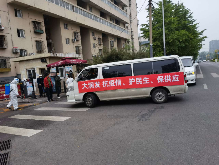针对封控小区,大润发门店提供保供包服务,并配送至社区。5月10日,大润发民族园店接到附近社区需求,紧急提供保供包200余件,包括土豆、包菜、葱姜蒜等民生物资。