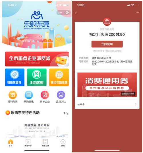 比如五一期间,东莞举办的“乐购东莞”活动,就是借助微信小程序向居民发放了3000万市级通用消费券,用户领券后,在零售、餐饮、住宿等适用门店消费一定金额,结账时使用微信支付,即可自动使用消费券。