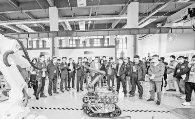 近300家高校院所、科研机构及行业组织的400余人参加了2021中国增材制造产业年会,图为与会者在参观安徽省春谷3D打印智能装备产业园。肖本祥摄/光明图片