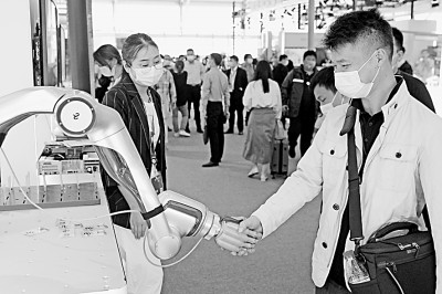 在2021中关村论坛上,观众在北京中关村国家自主创新示范区展示中心参观。郭俊锋摄/光明图片