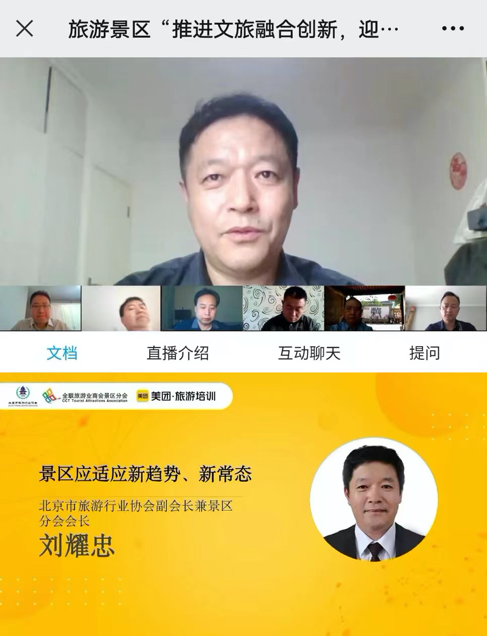 5月19日是第12个中国旅游日,由北京市旅游行业协会、全联旅游业商会景区分会、美团旅游培训中心联合举办的“推进文旅融合创新,迎接旅游消费复苏”系列线上培训公益直播正式上线,首期北京站围绕“疫情影响下,旅游景区应如何突围?”话题展开。