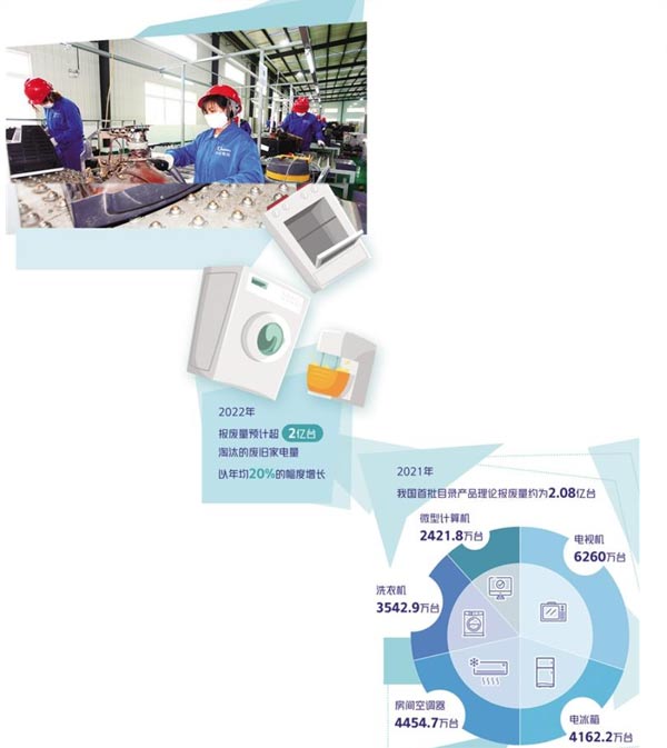 当前,我国步入家电更新换代高峰期,淘汰的废旧家电量以年均20%的幅度增长,今年报废量预计超过2亿台。
