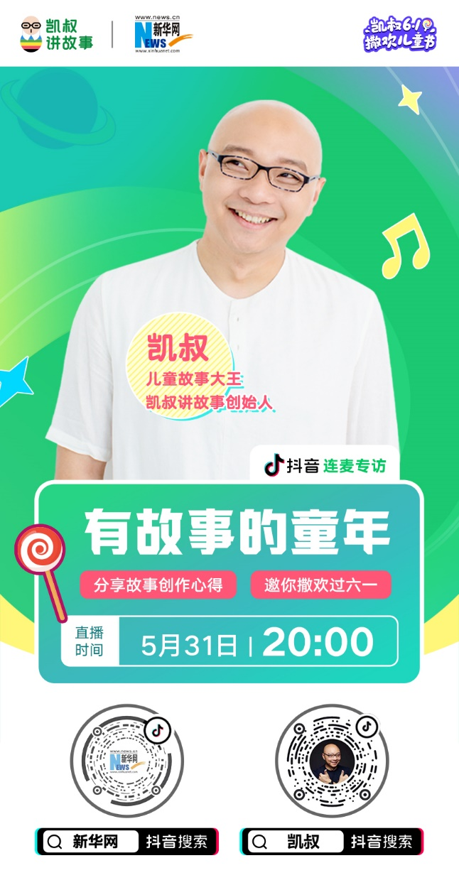 每年六一儿童节,都是孩子们的重要节日,对于儿童故事大王凯叔来说“凯叔6.1撒欢儿童节”是他对孩子们的坚守,也是凯叔与孩子们的成长约定。他一直在路上,一直在创新,希望用好故事陪伴孩子成长,用好故事给大朋友、小朋友守住童心。5月31日晚8点,凯叔将在抖音直播间接受新华网专访,一起畅聊童年乐趣,揭秘2022年在线故事音乐会精彩花絮。