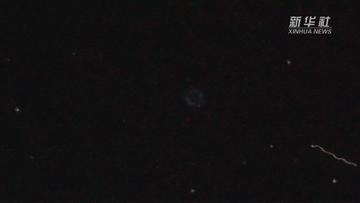 30日晚,新华社记者在北京进行武仙座τ流星雨视频直播时,拍摄到一颗流星从M57环状星云前飞过,恰似飞箭射中指环。