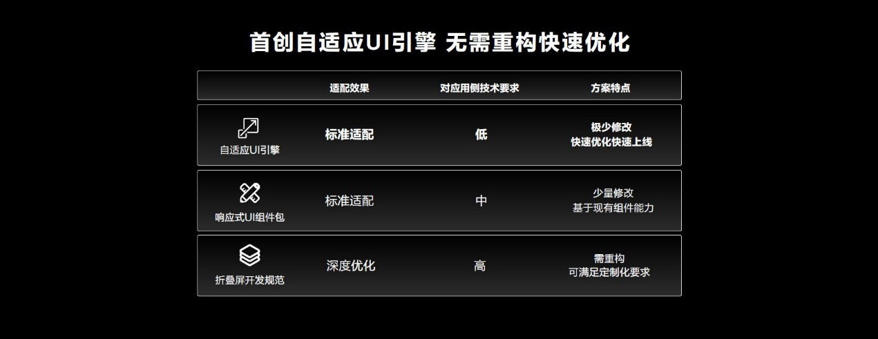 华为一直致力于与全球开发者展开深入合作,推动折叠屏应用生态建设,不断提升折叠屏手机用户体验。华为Mate Xs 2持续创新突破,首创自适应UI引擎,通过自学习获取原有布局信息,针对大屏显示重新优化布局,如文字从折叠态两行显示优化为展开态一行,重新排版布局、采用同色系元素智能填充、图片居中等方式让画面协调美观。而技术上,开发者无需重新开发,只需要简单的修改,就可快速优化快速上线,方便第三方应用接入。