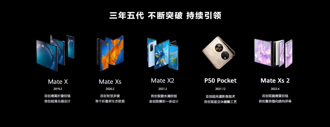 作为折叠屏手机赛道的引领者,华为从未停止创新的脚步。自2019年推出首款折叠屏手机华为Mate X以来,华为坚定不移地在折叠技术上攻坚求新,无论是折叠方式、硬件配置还是交互体验,不断突破折叠屏科技新高度与美学新高度,为用户带来独特的惊艳设计与突破认知的极致体验。