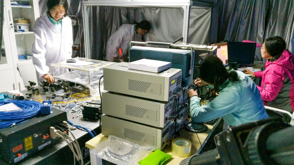 这是在西藏阿里拍摄的量子隐形传态实验(2017年5月2日摄)。