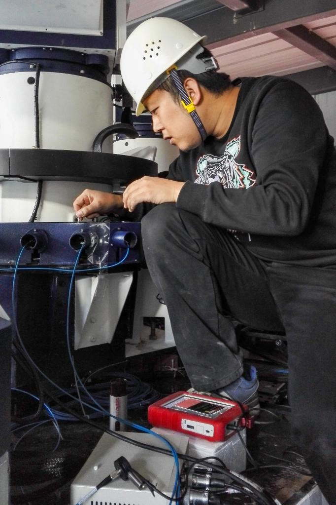 工作人员在国家天文台阿里观测站忙碌(2016年6月4日摄)。