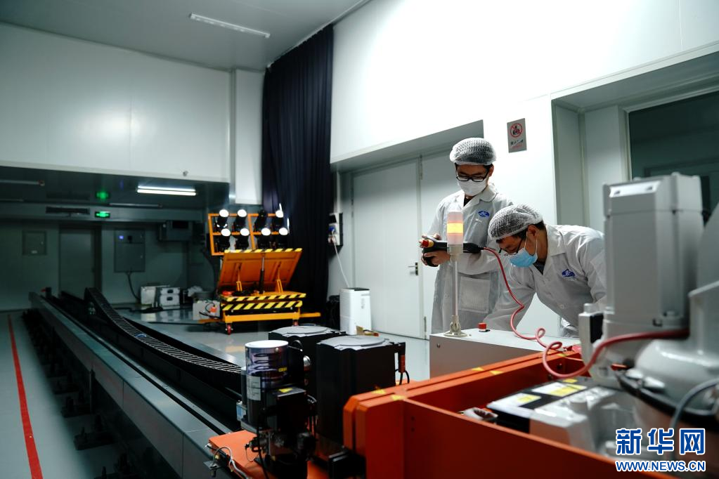 6月9日,中国科学院上海技术物理研究所科研人员在实验室进行轨道仿真运动模拟试验。