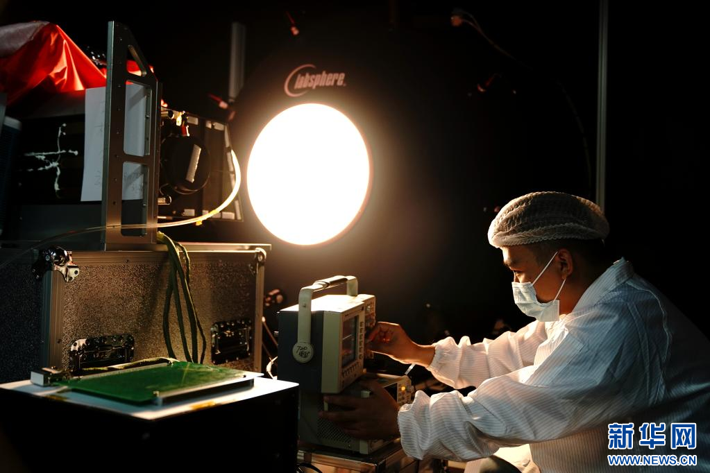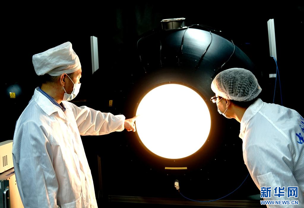 6月9日,中国科学院上海技术物理研究所科研人员在实验室进行航天产品可见光定标测试。