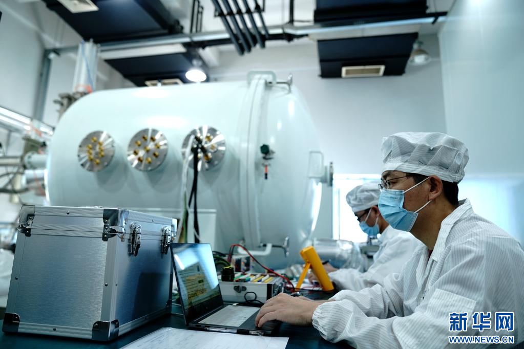 6月9日,中国科学院上海技术物理研究所科研人员在实验室进行航天产品定标数据采集。