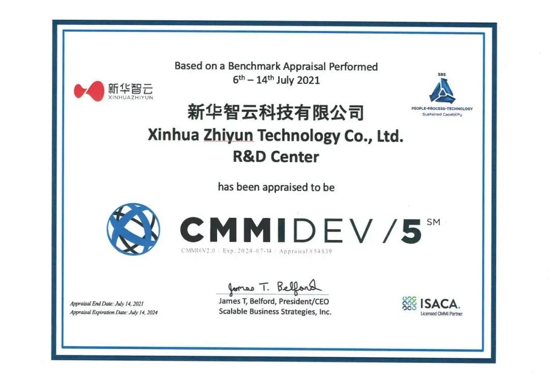 2021年,新华智云顺利通过全球软件行业含金量最高的评估之一——CMMI 5级评估