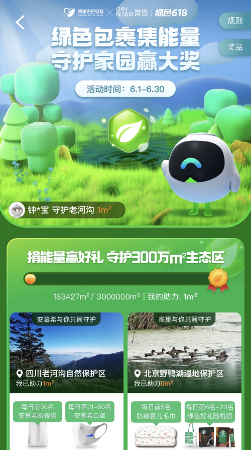 菜鸟绿色家园公益页面