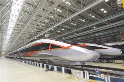 在节能环保方面,列车车头采用“鹰隼”仿生学设计,整车气动阻力降低了7.9%,节约能耗10%,配合轻量化车体和整体节能技术,单列车年均节电约180万度;同时列车采用变频空调机组,应用水性环保涂料和可回收材料,堪称“绿色列车”。