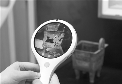 “AR探究镜”基于AR增强现实技术,展品信息的数字虚拟内容与设备后方摄像头获取的实际展品影像可融合叠加,在显示屏上为观众呈现虚实融合的视觉效果。该技术与5G结合,可在文化场所内提供实时富媒体化的新型讲解服务。 新华社记者 毛思倩 摄