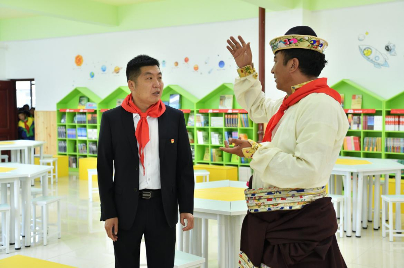 达瓦扎西是希望在孩子们心中播下阅读的种子,还要提供尽可能肥沃的土壤让“小书苗”长大。以前学校有旧的阅读室,但书籍少且老旧。五年级的姑娘米玛仓觉就说,以前有时候看完上册就找不到下册。所以,一听说旁边小学援建了图书室,达瓦扎西赶紧找到教育局领导,抓紧机会介绍更章门巴民族乡小学。