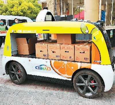 一辆装载着物资的无人车行驶在上海市杨浦区某小区道路内。该款无人车配备了L4级自动驾驶系统、车联网AI平台等,可以按照预设路线,一次将多件物资配送到多个点位。