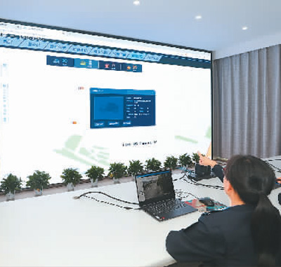 江西省莲花县城管局工作人员通过城管智慧管理平台查看、核实违规信息。李小斌摄(人民图片)