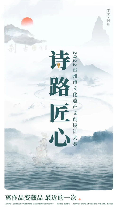 为深入落实《浙江省诗路文化带发展规划》 ,有效挖掘和利用诗路文化资源价值和内涵,弘扬诗路精神,传播诗路文化,树立诗路文化品牌,塑造诗路文化主题印象,特向社会发布“诗路匠心”2022台州市文化遗产文创设计大赛公告。