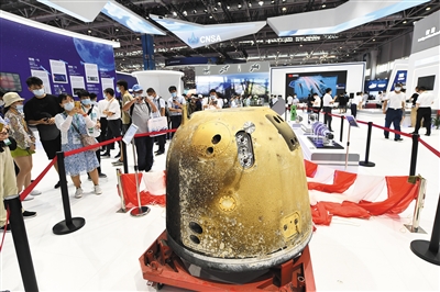 2021年9月28日,2021珠海航展,观众在航展上观看嫦娥五号返回舱和降落伞。图/IC photo