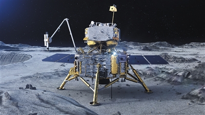 嫦娥五号在月球采样(效果图)。探月与航天工程中心供图