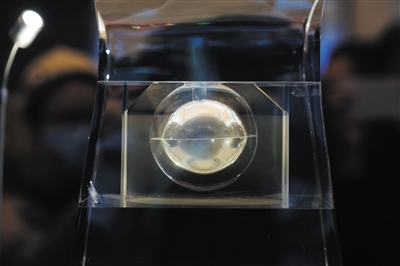 2021年2月27日,“月球样品001号·见证中华飞天梦”展览开幕式暨捐赠入藏仪式在中国国家博物馆举行。图中为“月球样品001号”。