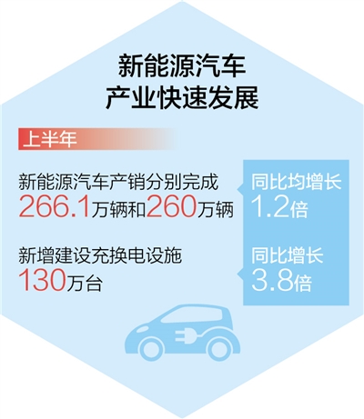 “上半年高技术制造业增加值同比增长9.6%,高于制造业增加值增速6.8个百分点。”田玉龙说,新兴产业已成为推动转型升级、增强产业韧性的重要新动能。其中,二季度,单晶硅、多晶硅、光伏电池等产品产量分别增长61.3%、50.6%、30.4%,较一季度分别加快37.3、13.0、6.1个百分点。