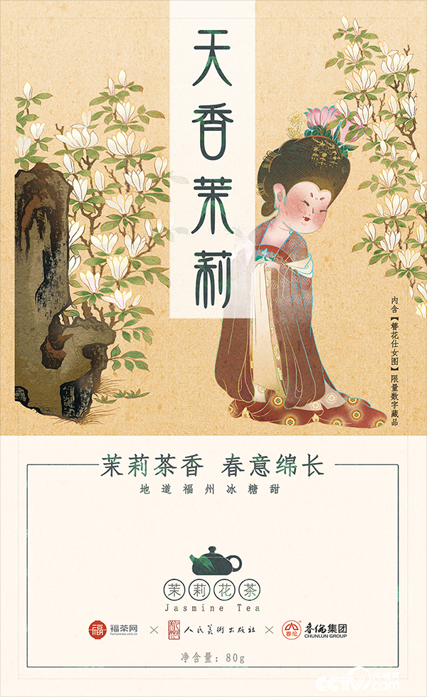 中国美术出版总社系国家级美术出版机构,下辖人民美术出版社、连环画出版社。针对本次跨界联名合作,合作各方精心从人民美术出版社海量优质内容中挑选了最符合福建“福”文化以及茉莉花茶清香淡雅格调的中国传世名画《簪花仕女图》进行创作,通过文化及科技与传统产业的融合,传承中国传统文化,提高国人的审美水平。