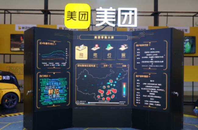 在本次消博会现场,美团还展示了本地零售大屏。美团零售大屏是基于美团平台6.9亿用户在“购、吃、行、娱”等生活各方面的消费需求而形成的智能调度系统,通过数字化的方式重点体现全国各省市购物、餐饮、出行、休闲娱乐等领域的消费和供给情况,提高供需之间的匹配效率。