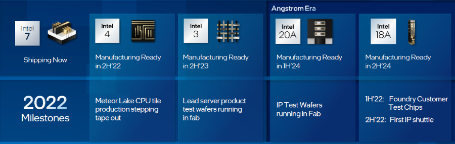 数字经济时代,随着纳米尺度越来越小,意味着晶体管微缩越来越困难,再继续推动摩尔定律需要组合多种技术。据宋继强介绍,晶体管微缩仍然是重要技术,英特尔在未来四年将会连续推出五个把晶体管微缩往前推进的关键节点:今年的产品为Intel 7,下半年将推出Intel 4,明年将推出Intel 3,然后将以“埃米A”作为新的命名方式,十个埃米等于一个纳米,预计将在2024年引入Intel 20A,这意味着英特尔已经开始往埃米时代进军,2024年底还将推出Intel 18A。