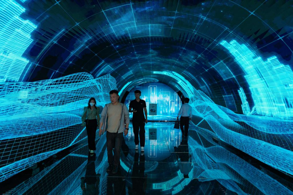 7月28日,观众在2022全球数字经济大会拉萨峰会上参观。