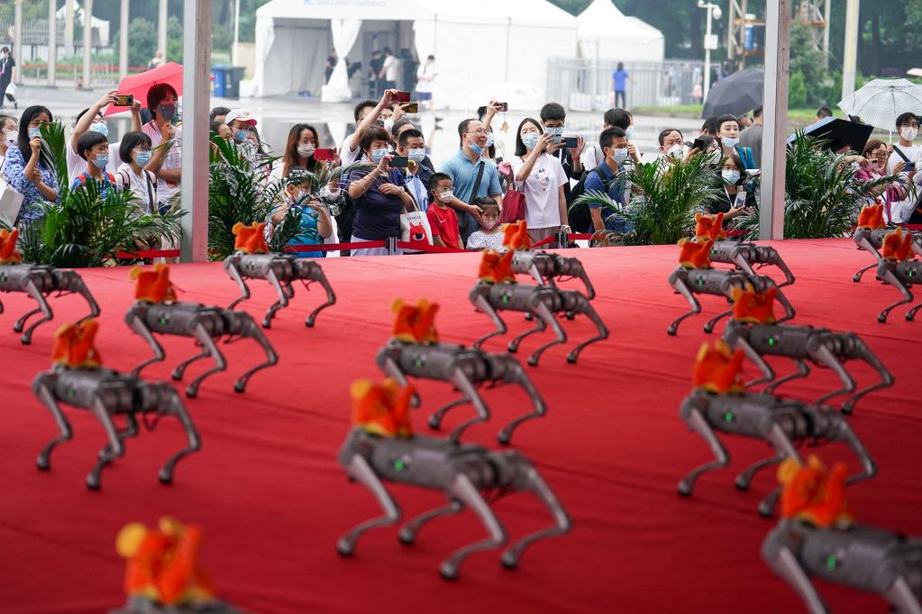 这是8月18日在2022世界机器人博览会上拍摄的机械狗。