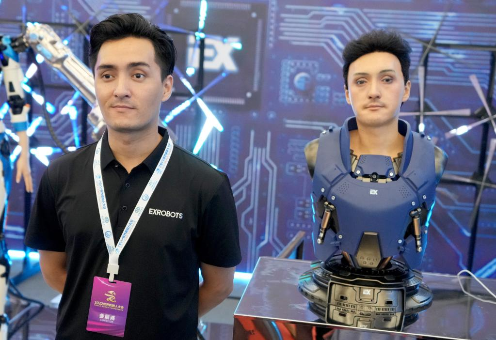 这是在2022世界机器人博览会上拍摄的一款人形机器人(8月18日摄)。