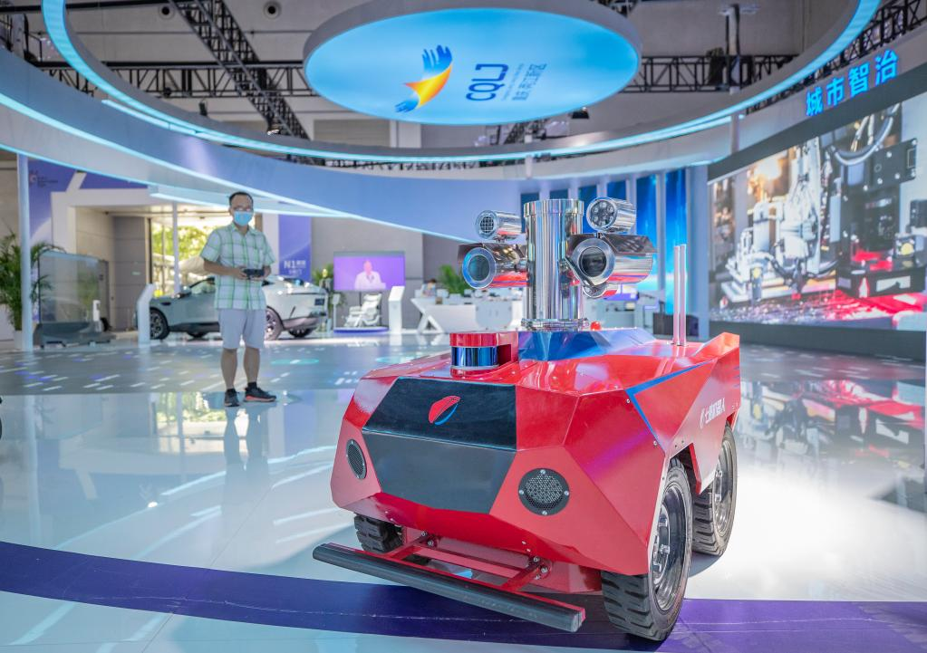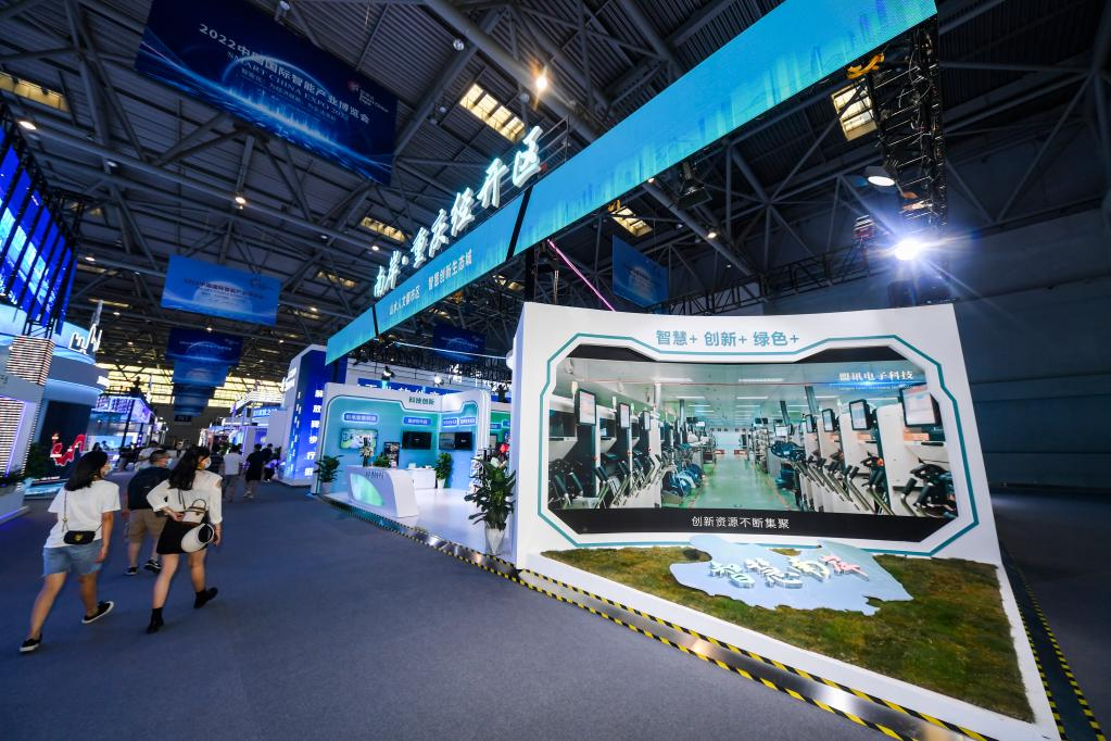 8月21日,媒体记者和嘉宾在2022中国国际智能产业博览会会场内参观。