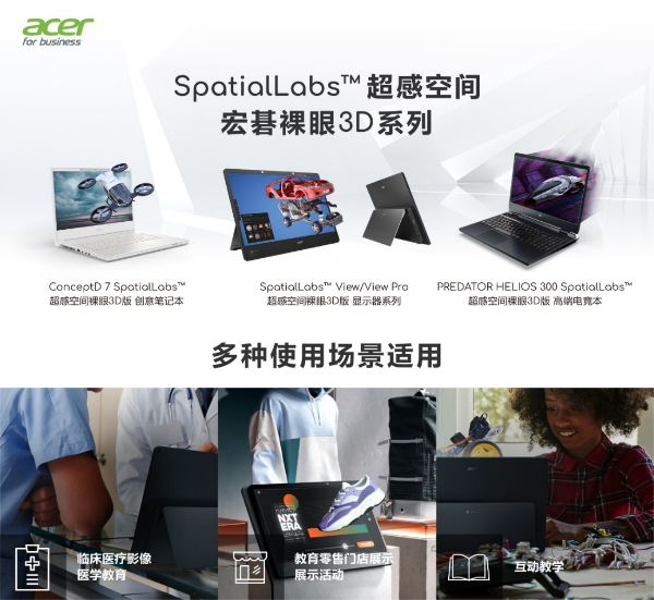 创新的SpatialLabs裸眼3D技术,搭配宏碁人性化的设计,可以应用在各种专业领域。在对环境要求严苛的医疗领域中,SpatialLabs View Pro超感空间裸眼3D版支持Ultraleap手势识别交互方式,让医生在通过裸眼3D对病区进行会诊时,或进行治疗过程中通过屏幕观察病情时,可以有效减少频繁触控带来的风险。