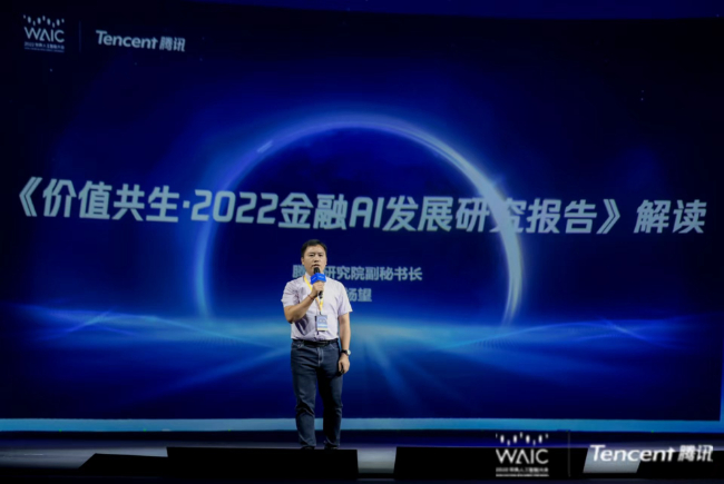 9月3日,2022世界人工智能大会腾讯论坛上,腾讯发布《价值共生·2022金融AI发展研究报告》(以下简称“报告”)。报告由北京金融科技产业联盟作为指导单位,由腾讯研究院与腾讯优图实验室、腾讯云、交通银行组成的联合课题组,联动腾讯内部及金融机构业务侧,对国内多个金融机构进行了近五个月的调研,并将调研成果与课题组对金融AI的发展趋势思考进行汇总,共同编制而成。