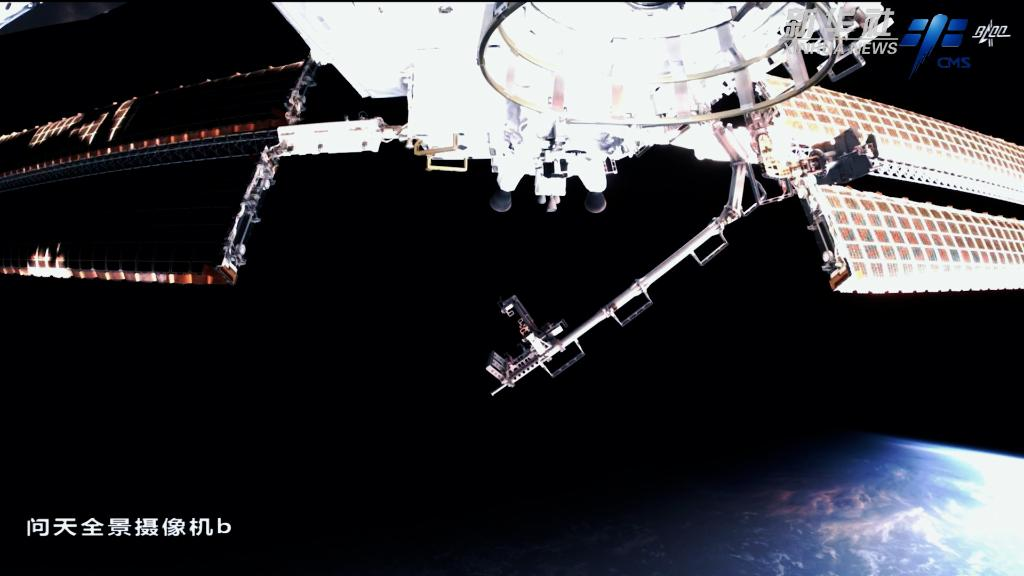 神舟十四号航天员乘组首次出舱任务完成了问天舱外全景相机B抬升工作,抬升后的全景相机拍下地球与太阳翼相互映衬的画面,美不胜收。载人航天邀你一起全景看地球,全新出发,活力满满!