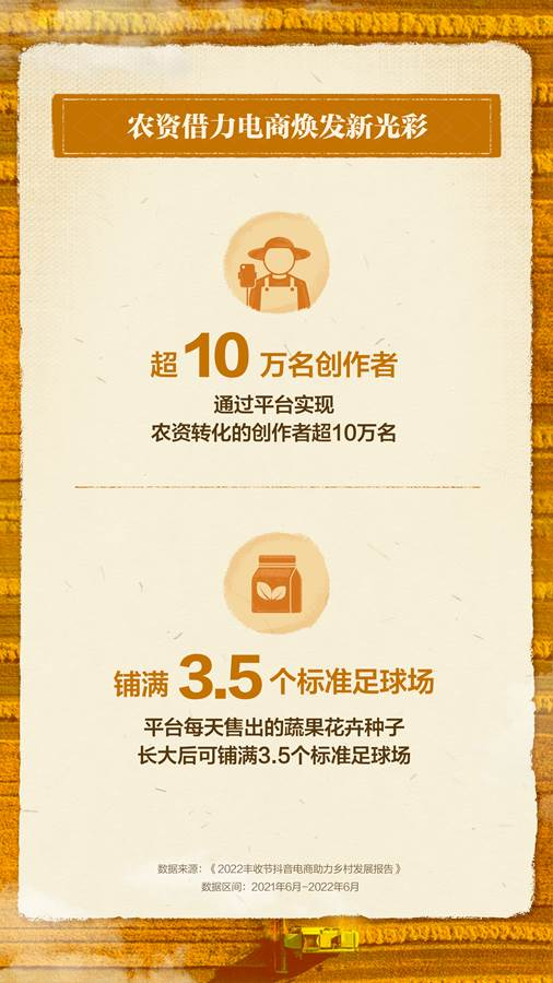 还有超10万名创作者通过抖音电商实现了农资转化,焕发出新光彩。据报告,该平台每天售出的蔬果花卉种子,长大后可铺满3.5个标准足球场。
