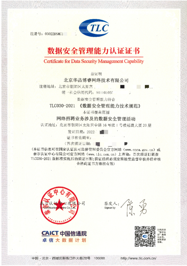 日前,中国信息通信研究院(以下简称“中国信通院”)向BOSS直聘颁发了“数据安全管理能力认证(DSMC)”证书。