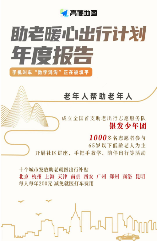 去年10月,在全国老龄办指导下,中国人口福利基金会、高德打车联合发起“助老暖心出行计划”。