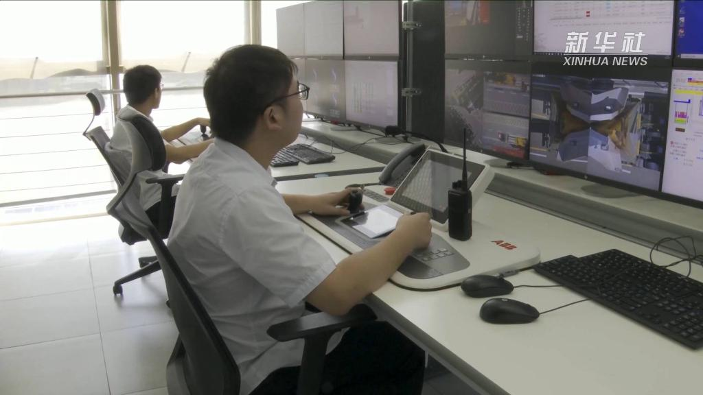 太仓港四期码头共配置28台无人自动化轨道吊,可通过AR和人工智能技术自动识别集卡位置进行装卸操作。现在,作业人员只需坐在控制中心的电脑前,即可对堆场上的集装箱实现“隔空取物”。