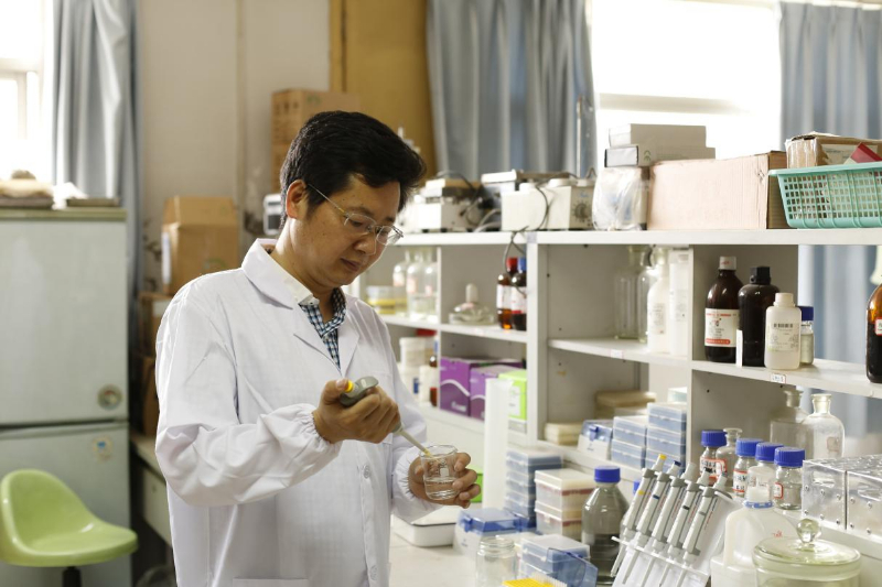 正在实验室进行科研实验的张盛林