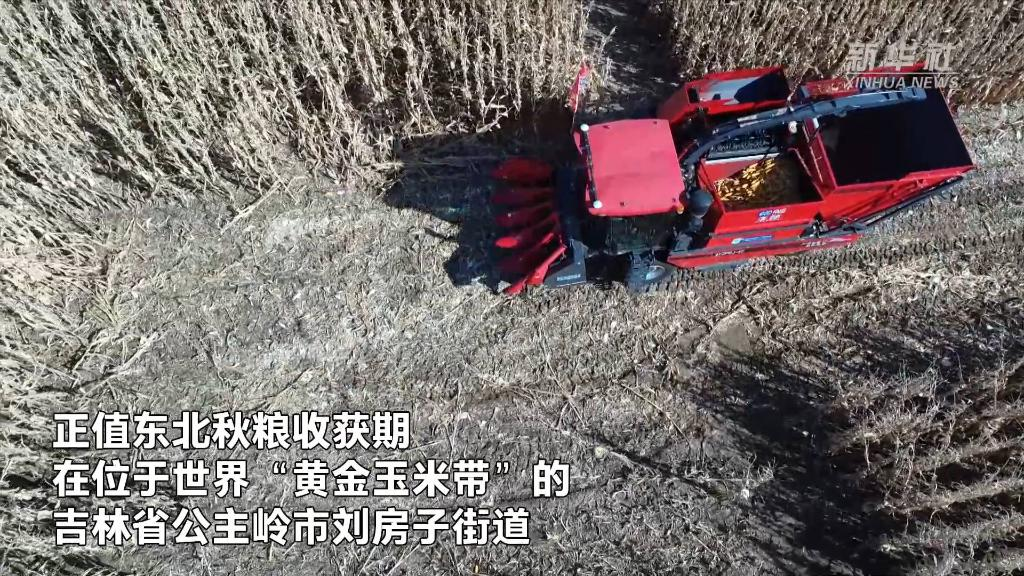 正值东北秋粮收获期。在位于世界“黄金玉米带”的吉林省公主岭市刘房子街道,一台无人驾驶的玉米收割机正在地里自动行走收获玉米。
