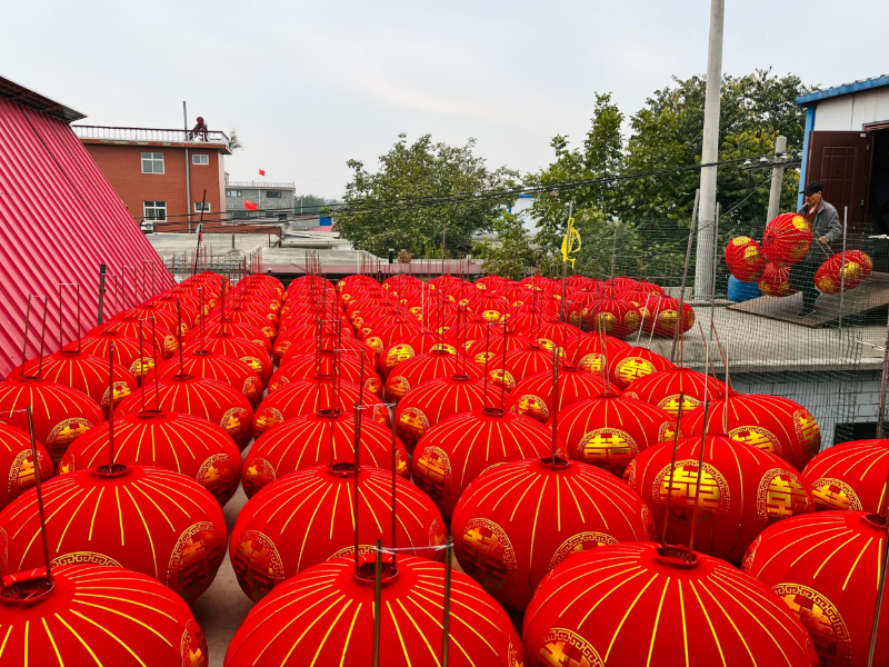 在屯头村,大红宫灯随处可见,全村9成村民从事宫灯相关产业