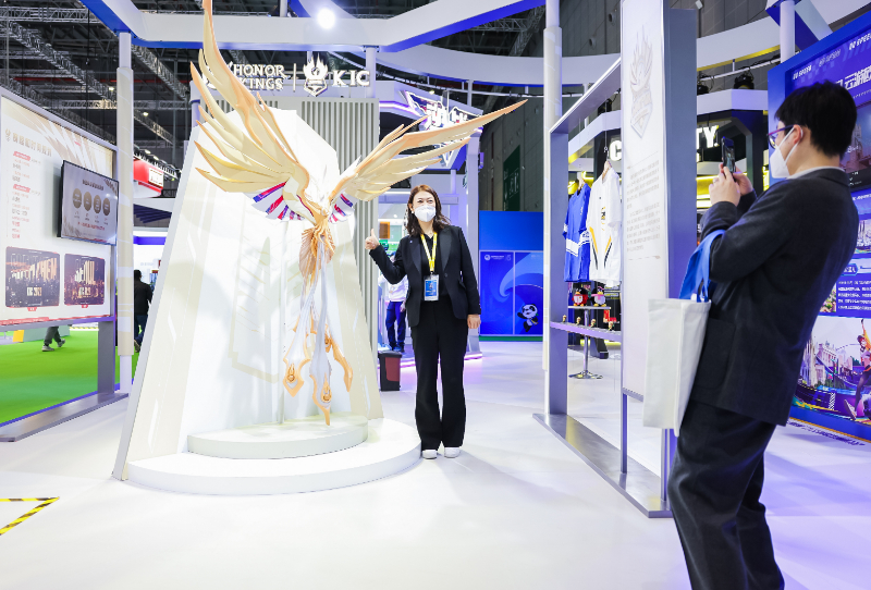 2022年王者荣耀世界冠军杯KIC将最新赛事信息搬到了进博会现场。2022年王者世冠KIC将于11月底正式开赛,来自多个国家和地区的参赛队伍将齐聚王者峡谷,共逐世冠荣耀。在王者荣耀—竞技岛屿,现场展示的队伍战袍、凤凰模型,循环播出的宣传片,吸引着众多参观者。
