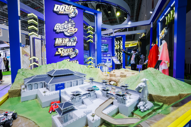 在QQ飞车—文创岛屿,联动国家级非遗项目苏绣打造的七夕限定魔法套装——十里红妆,融入牡丹元素的“国色天香”套装,演绎着“云想衣裳花想容,春风拂槛露华浓”的古典美,引来众多参观者合影。这些古香古色的套装也都入驻《QQ飞车》,与赛车、跑道的科技灵动形成反差,产生出别样的化学反应。“我们促进‘电竞+文旅’跨界融合,将民族文化、传统文化、地域文化融入到设计中,让玩家沉浸式地感受中华传统文化的魅力。” 腾讯互动娱乐天美J1工作室运营总监赵斯鹏说。
