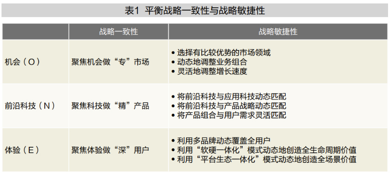 对那些在高度动荡的环境中想保持韧性增长的企业而言,本文基于OPPO案例所提炼出的“精一战略”ONE模型具有重要的战略意义,因为这一模型不仅涵盖了韧性增长需要解决的核心问题,而且引导企业平衡战略的一致性与敏捷性(表1)。