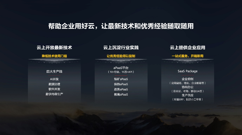 华为全方位支持客户用好云,将技术、经验和应用开放在云上,帮助更多企业利用好云的新能力,实现从“上好云”到“用好云”的跨越。
